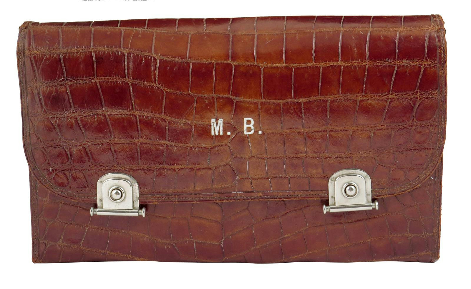 λ An Edwardian crocodile skin gentleman's dressing set by Finnigans