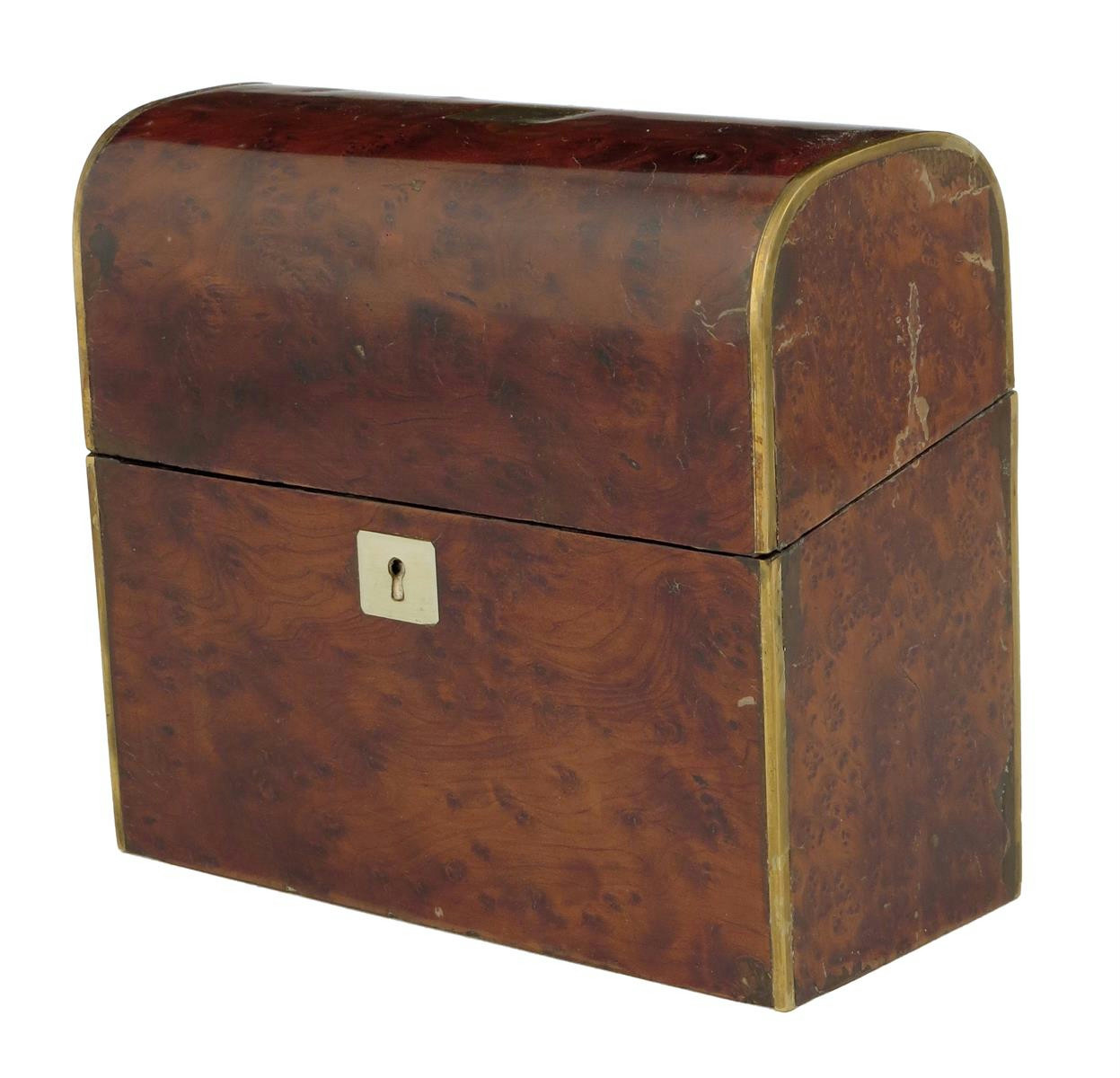 A 19th century burr yew and brass scent bottle box