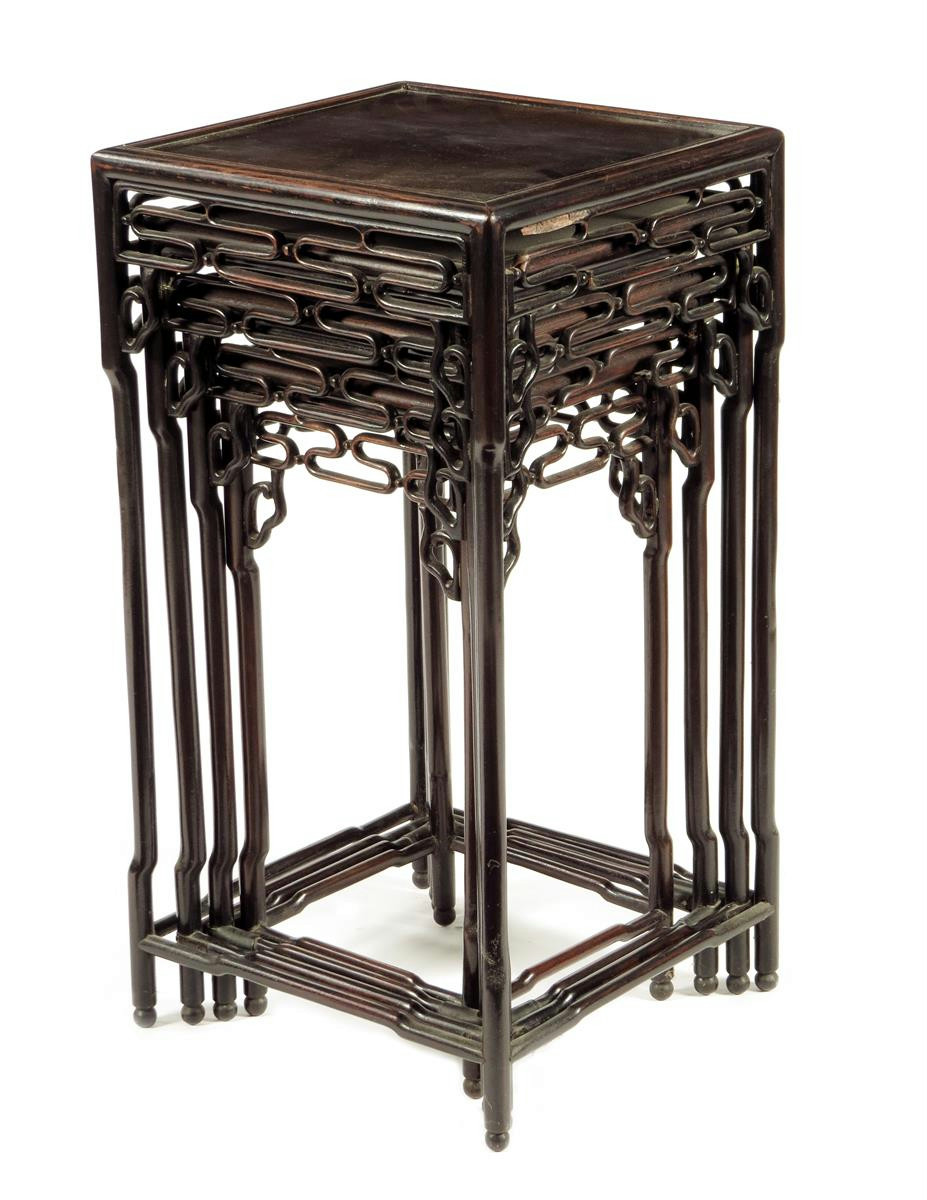 A late 19th century quartetto nest of Chinese hardwood occasional tables