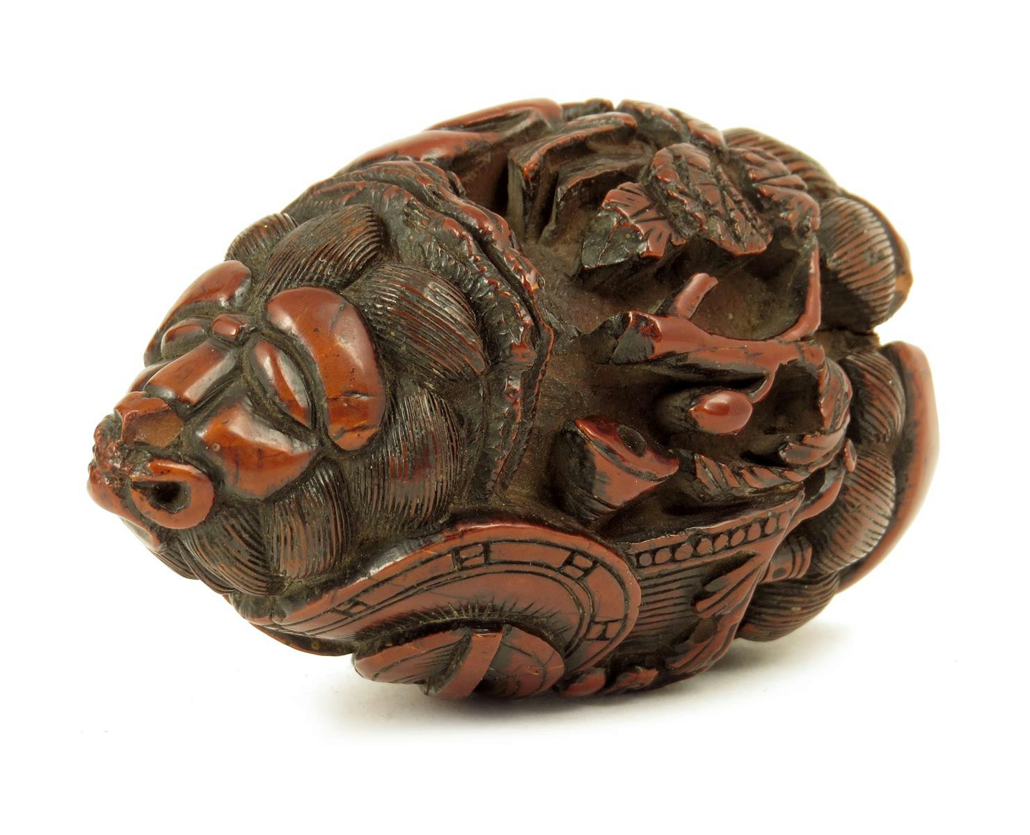 An early 19th century carved coquilla nut snuff flask
