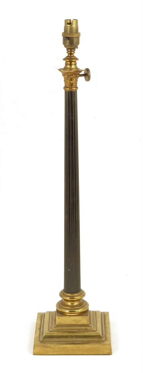 A gilt and patinated brass Corinthian column table lamp
