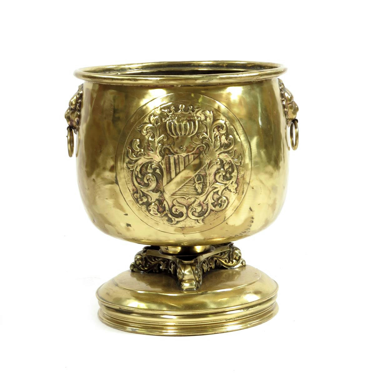 A 19th century Dutch jardiniére with lion's mask ring handles and decorated a coat of arms