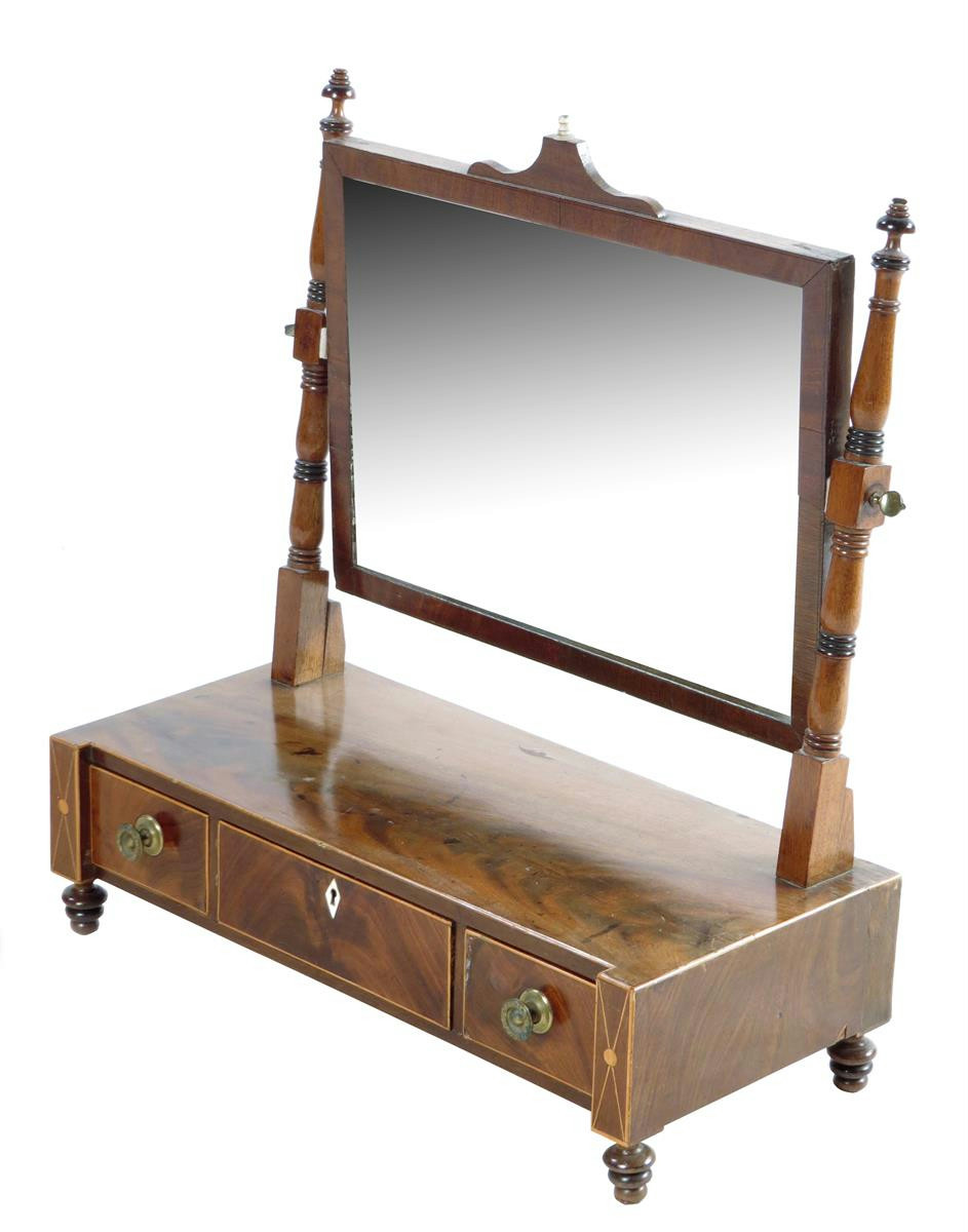 An early 19th century mahogany toilet mirror