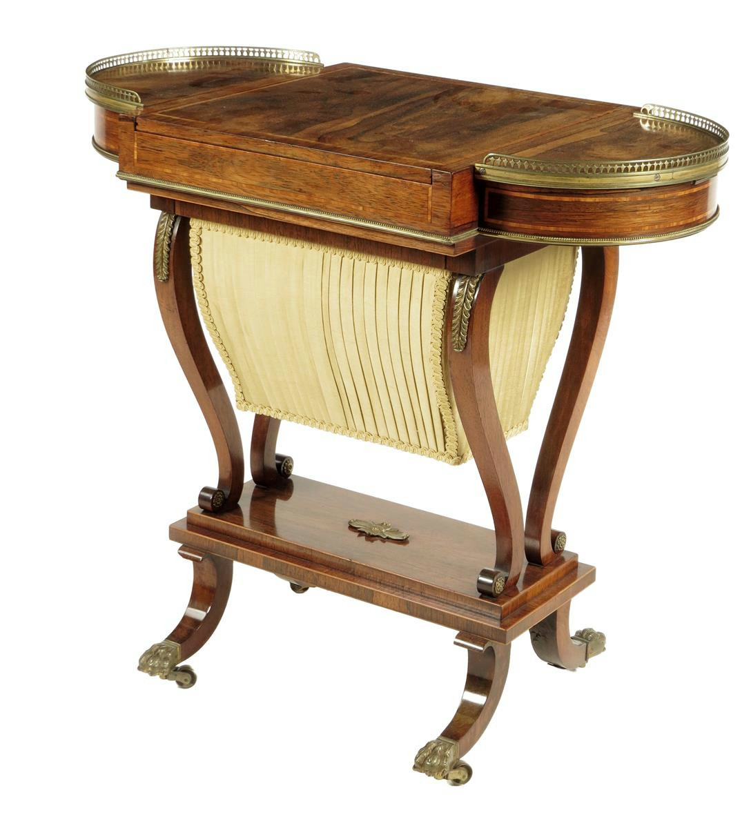 λ A Regency rosewood and brass mounted games table in the manner of Gillows