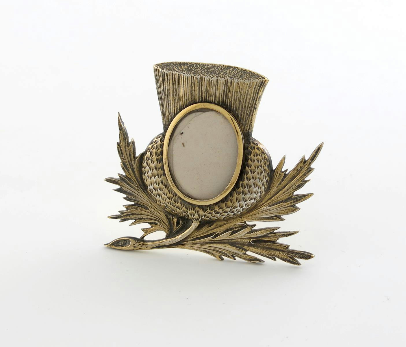 modelled as a thistle, easel back, height 6.3cm.