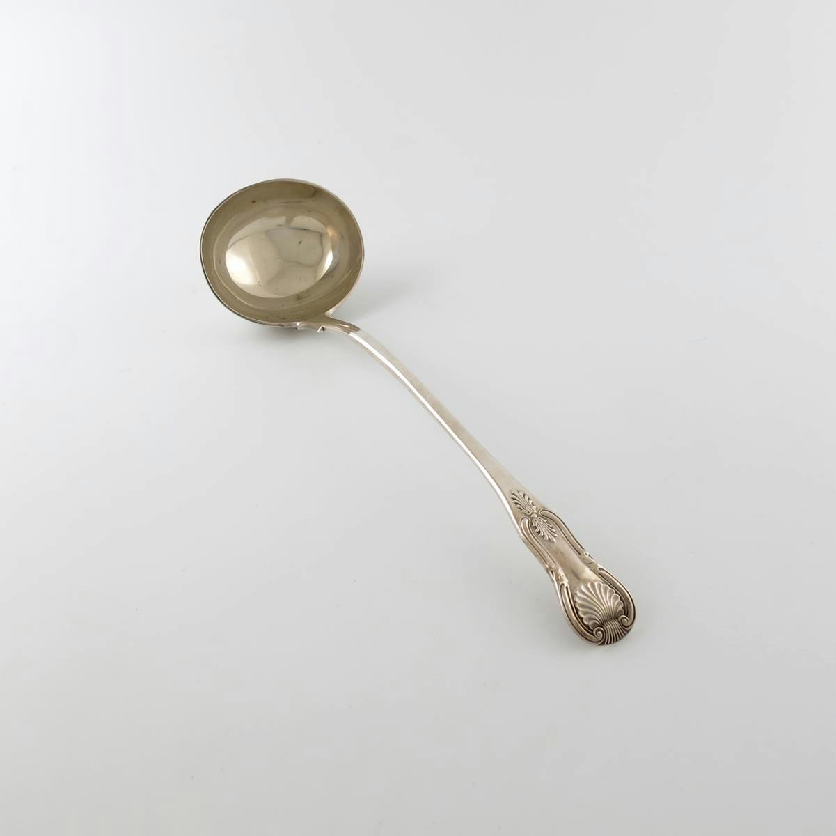 A Victorian Scottish silver single-struck King's pattern soup ladle,