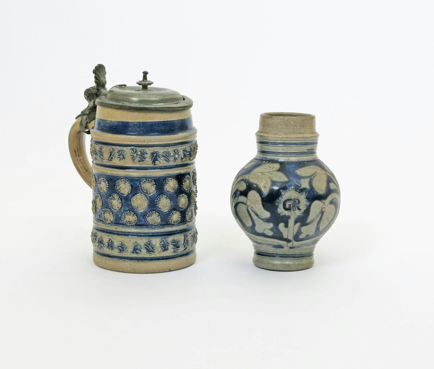 A Westerwald stoneware small jug and pewter-mounted tankard 18th century