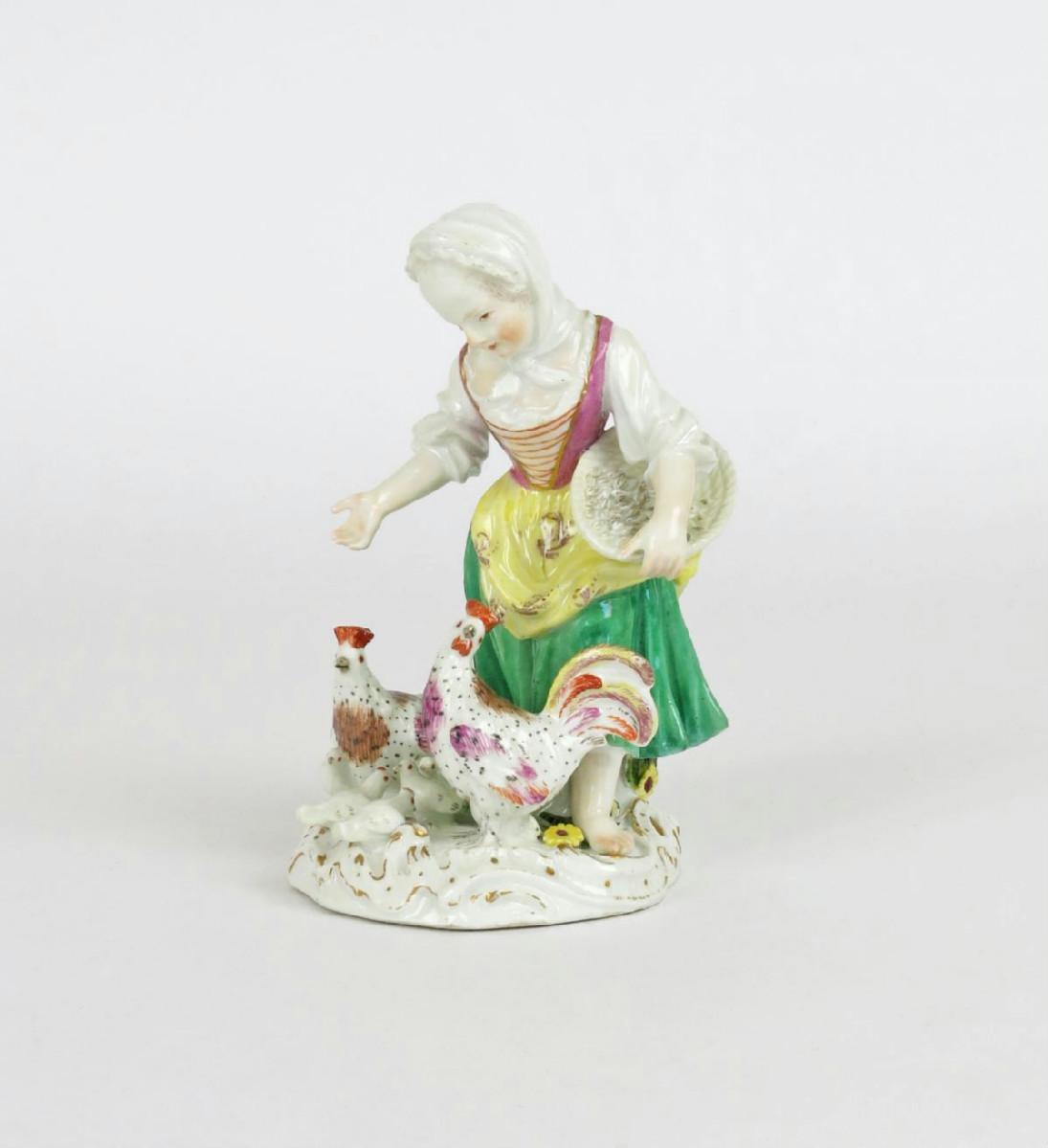 A Meissen figure of a girl feeding chickens mid 18th century