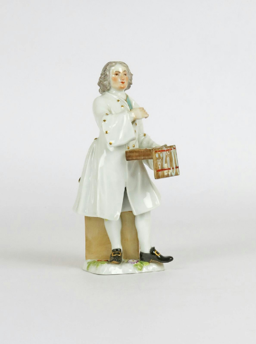 A Meissen figure of a trinket seller from the Cris de Paris 20th century