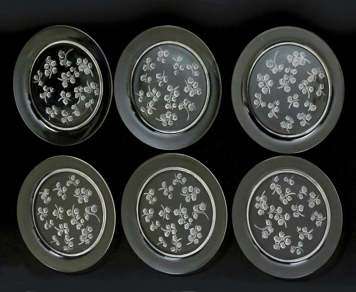 'Muguet' No. 10-3045 a set of six Lalique clear and frosted glass plates designed by Rene Lalique