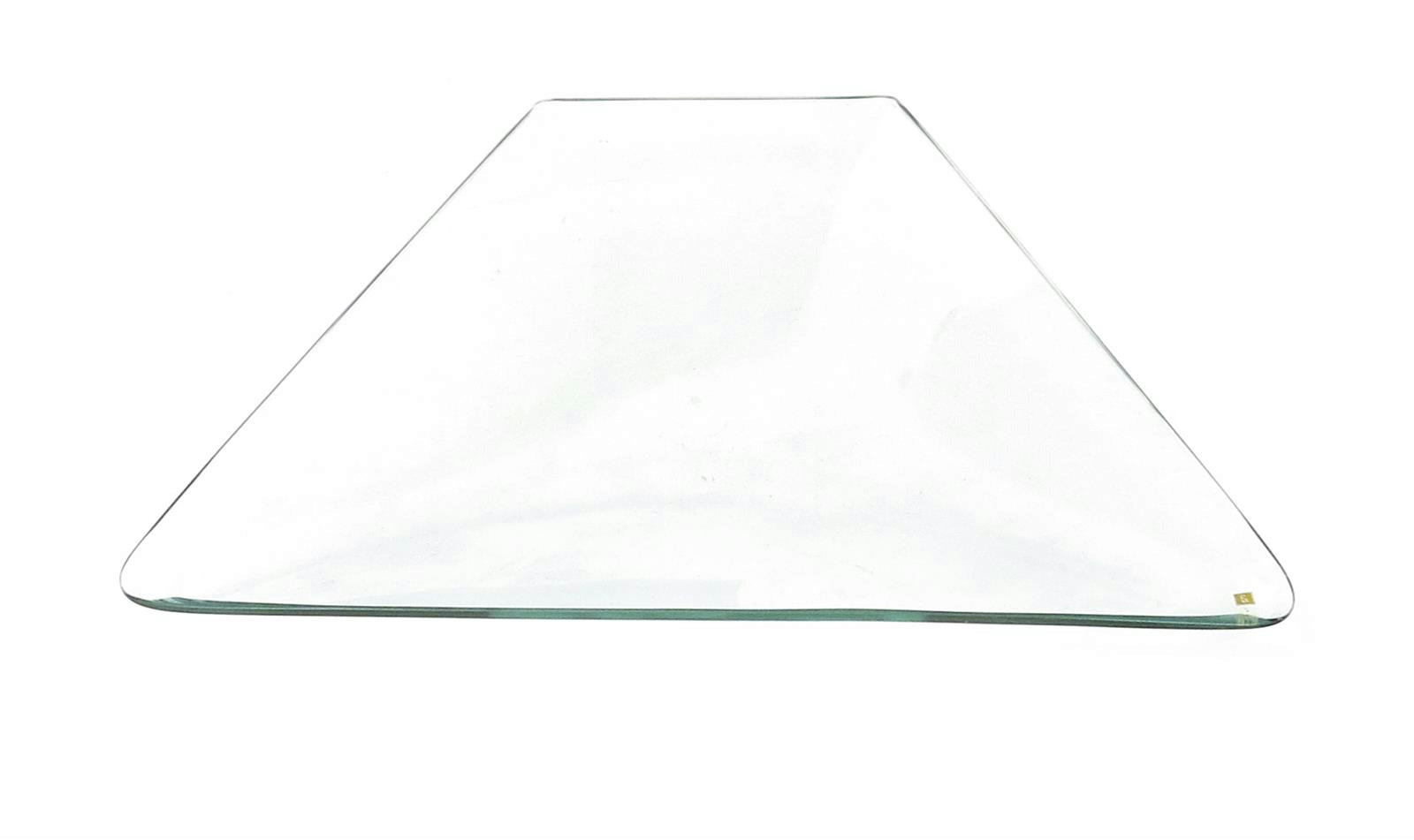 A Fontana Arte clear glass dish, asymmetric clear glass form, acid etched mark to corner, original retail paper label 45.5cm. wide