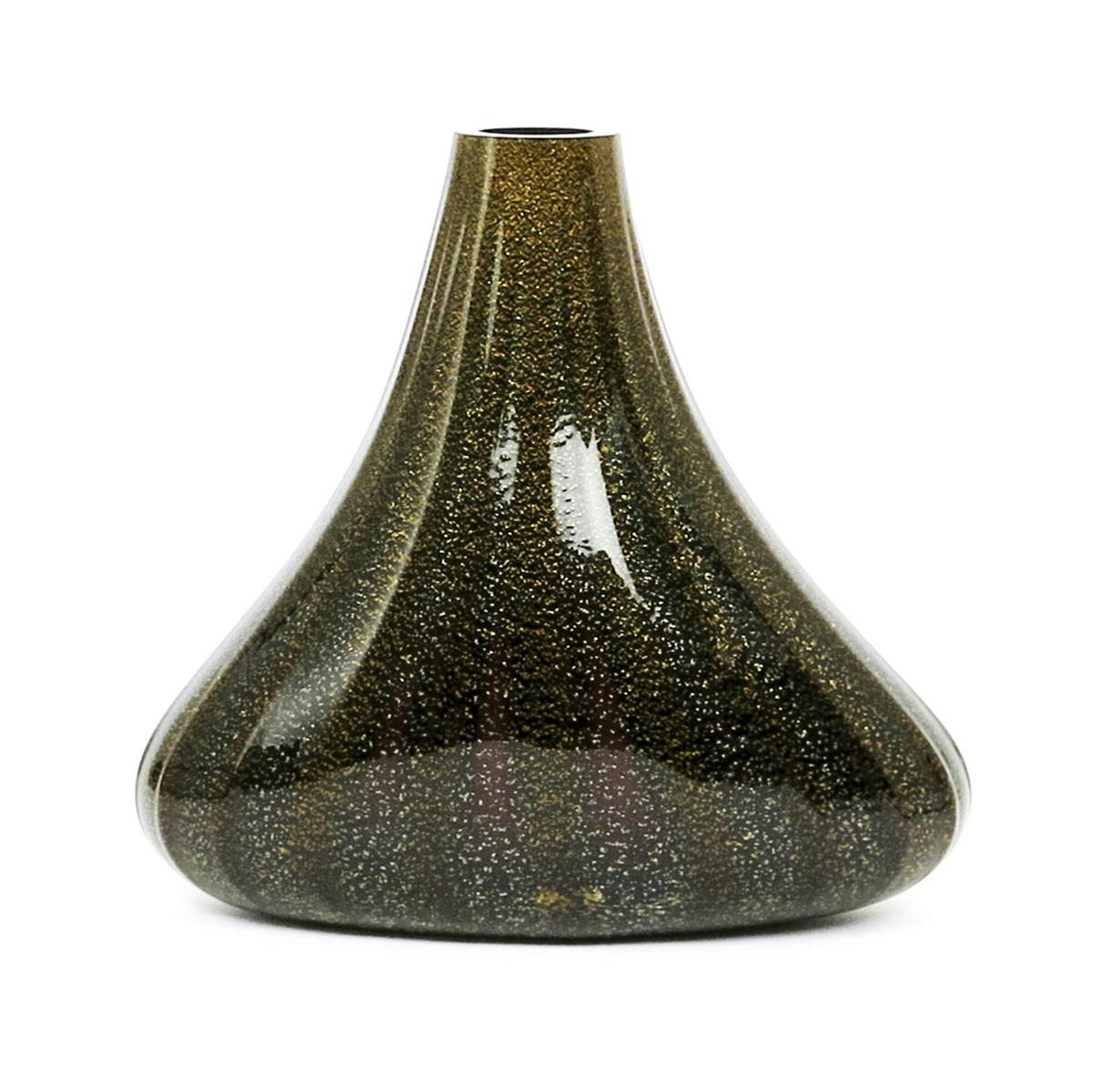 A large Italian cased glass vase attributed to Barovier & Toso, tapering, swollen faceted body black glass with aventurine inclusions, cased in clear remains of paper label etched Barovier & Toso 1951 to base 39cm. high