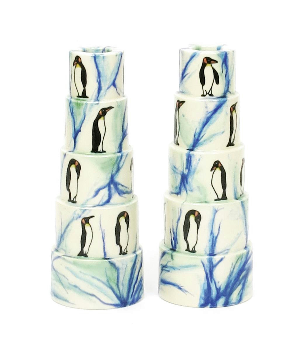 'Penguin' a pair of Dennis Chinaworks stepped candlesticks designed by Sally Tuffin