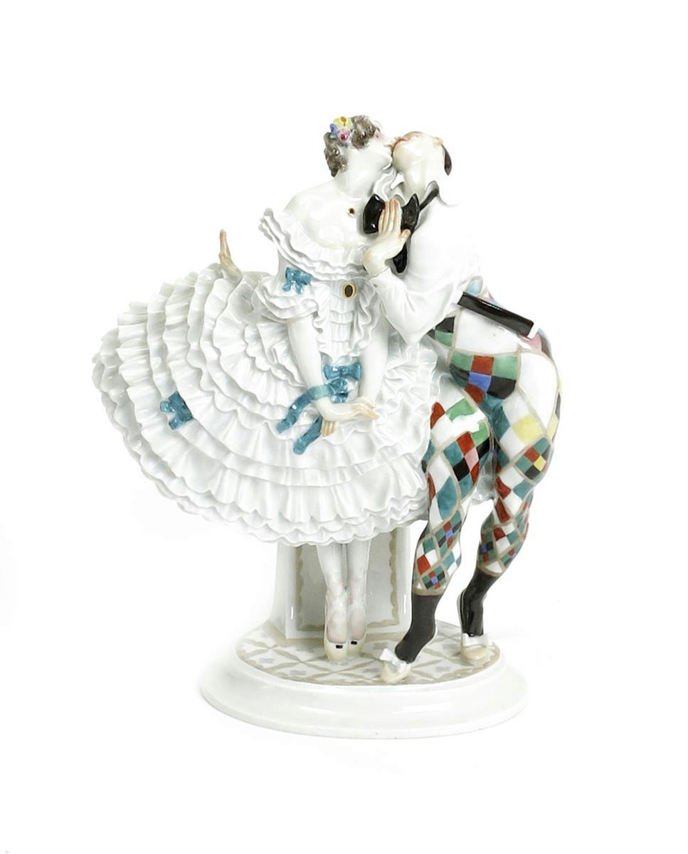 A Meissen group of Ballet Russe dancers Amazon with Amor