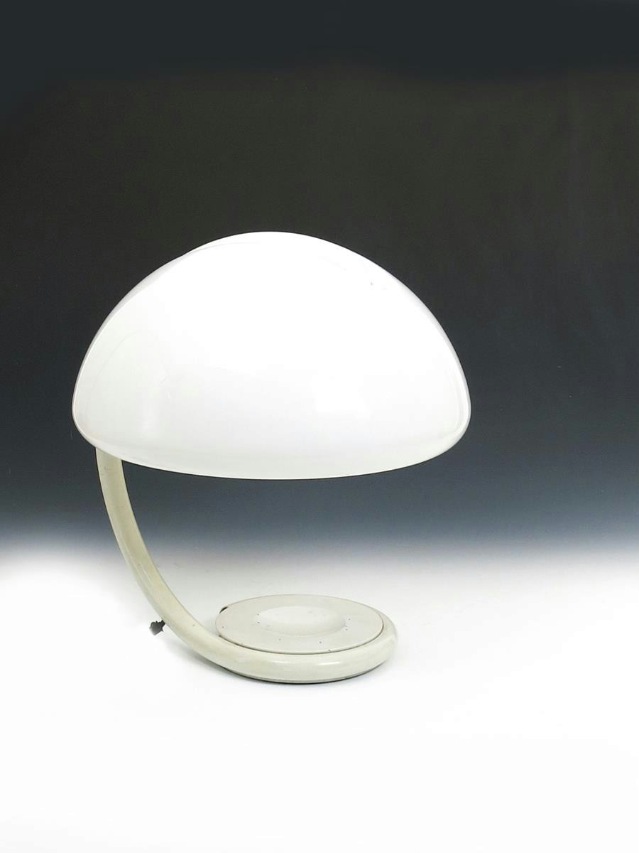 A Martinelli Luce Serpente desk lamp designed by Elio Martinelli, with opaque plastic shade cast marks, 47cm. high