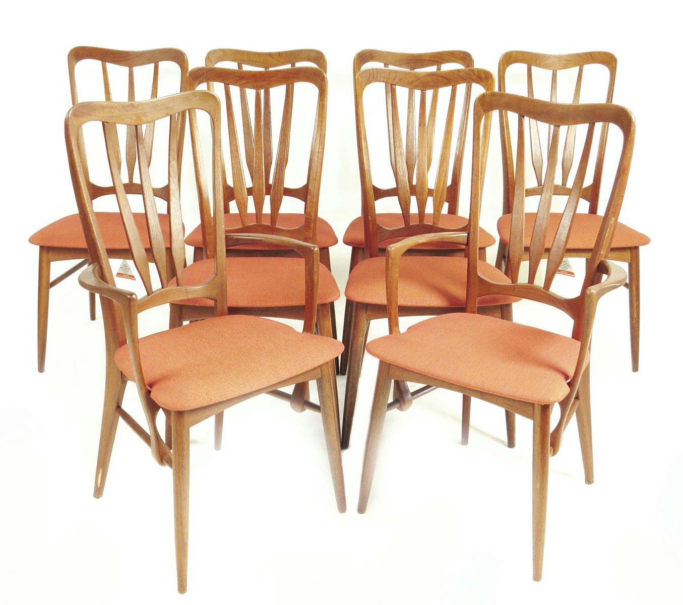 A set of eight Danish teak chairs designed by Niels Koefoeds