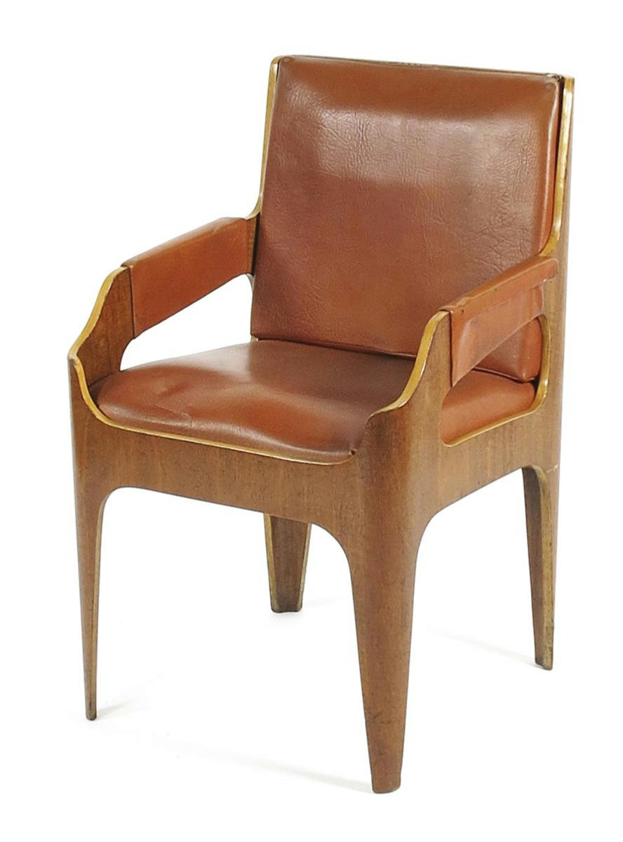 A laminated plywood armchair designed by John Wright FRIBA for the Canberra liner