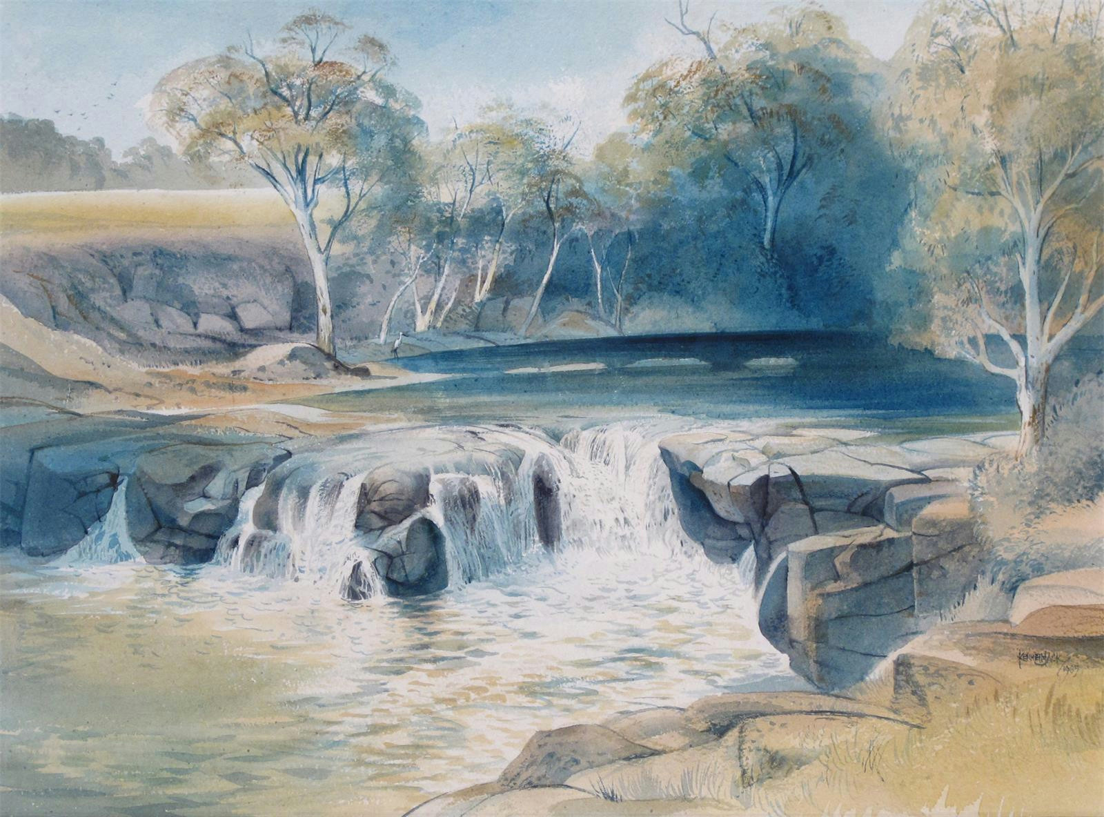 Kenneth William David Jack (Australian 1924-2006) Waterfall on Mt. Emu Creek Watercolour 40 x...