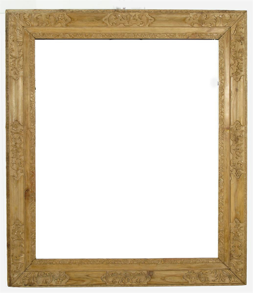 An 18th Century carved pine frame, 78 x 65cm; 30¾ x 25½in (rebate size)