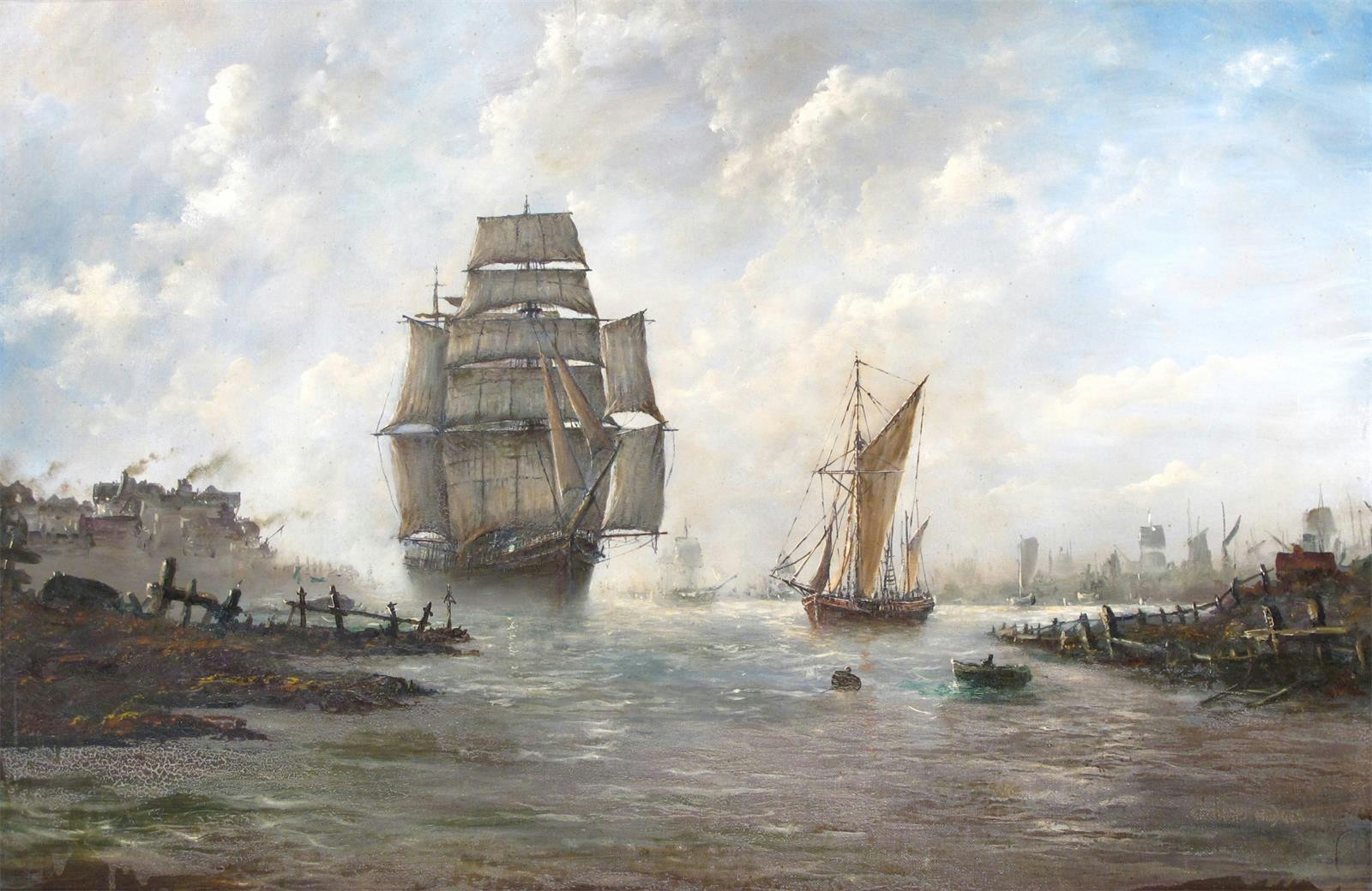 English School (20th Century) Sailing ships on an estuary Signed indistinctly