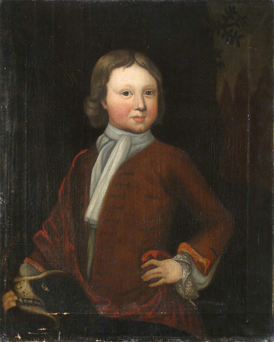 English School 18th Century Portrait of a boy with his dog Oil on canvas