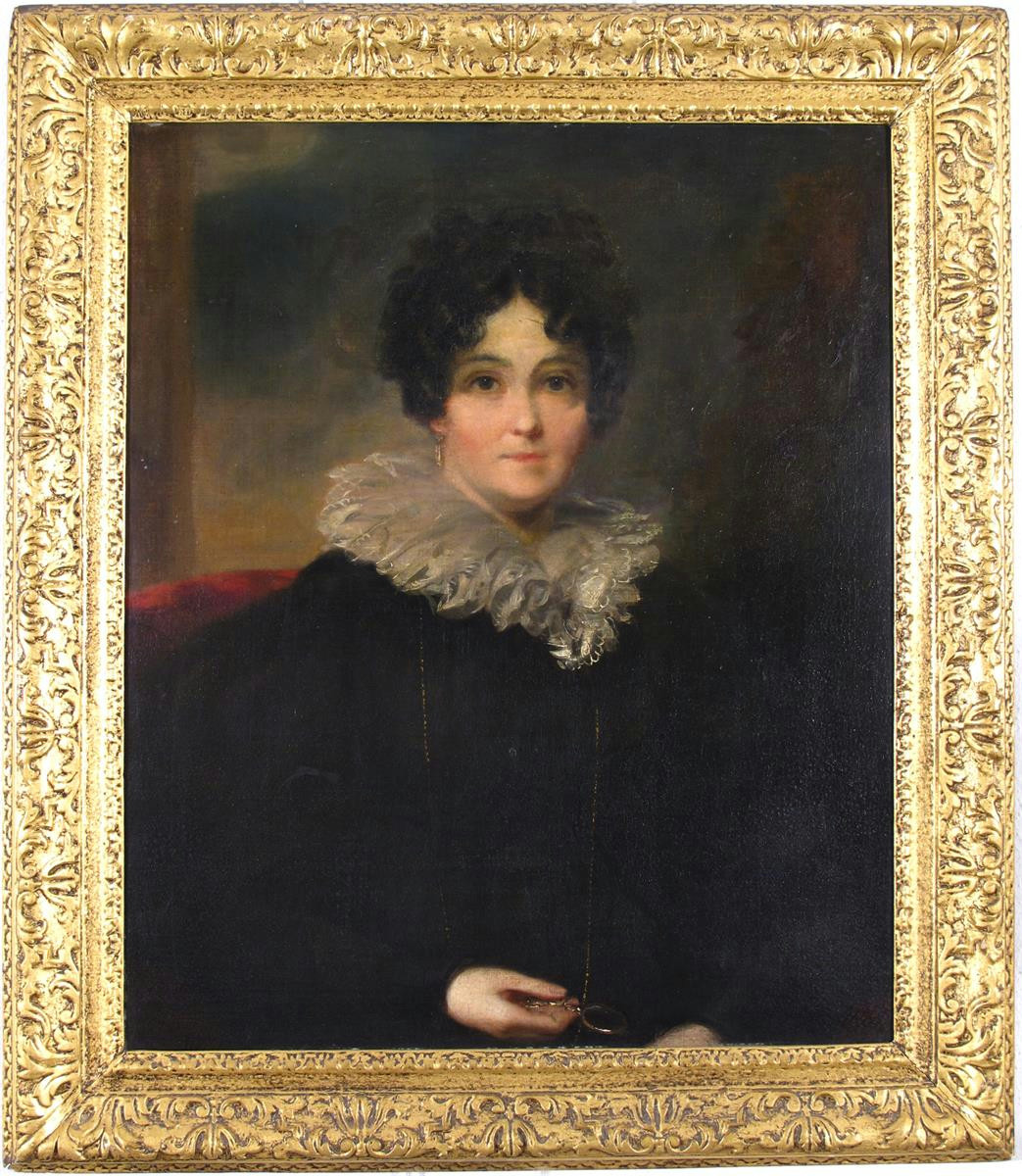 Portrait of a lady, half length, wearing black with a lace collar