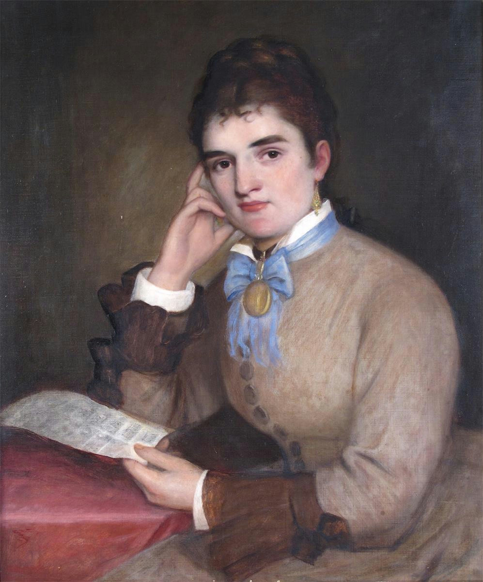 Portrait of Mrs Harriet Read, seated holing a letter
