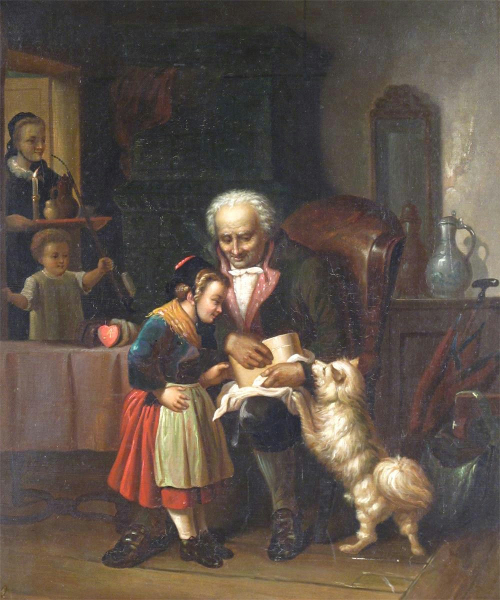 German School 19th Century A family in an interior Oil on canvas in a gilt frame 45.5 x 37cm; 18...