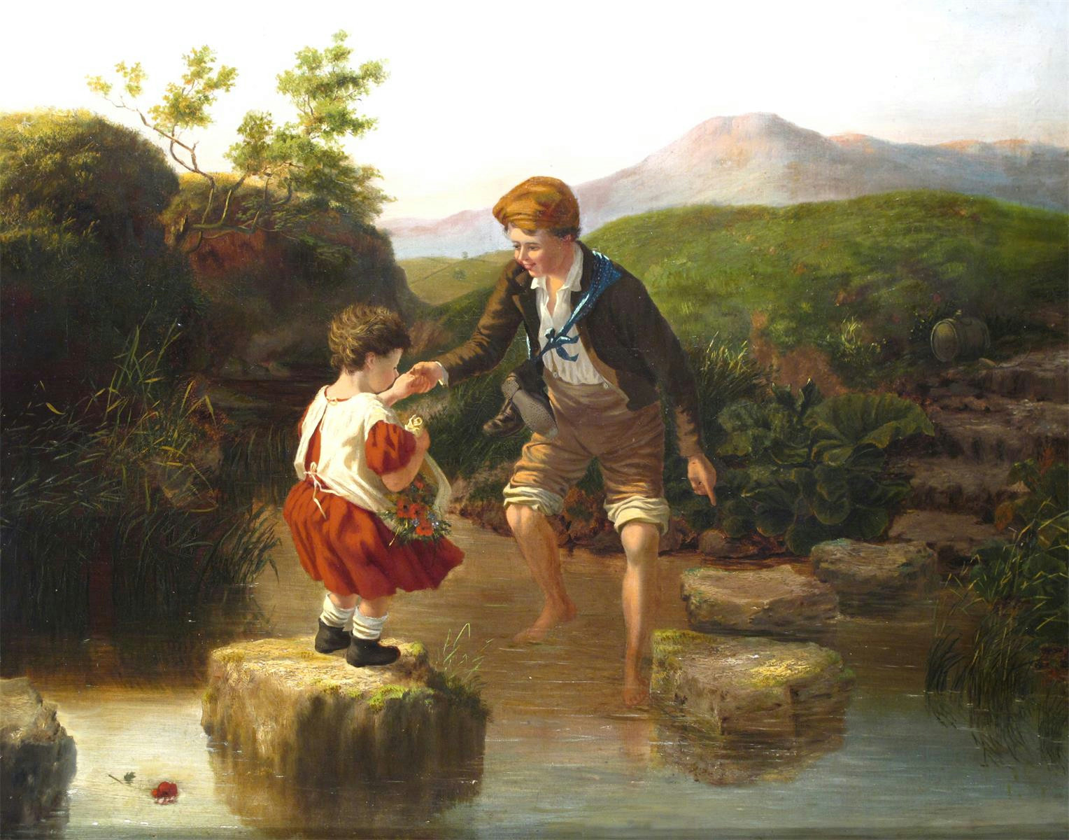 English School 19th Century A Helping Hand Signed with initials H.W. Oil on canvas 64 x 76cm; 25...