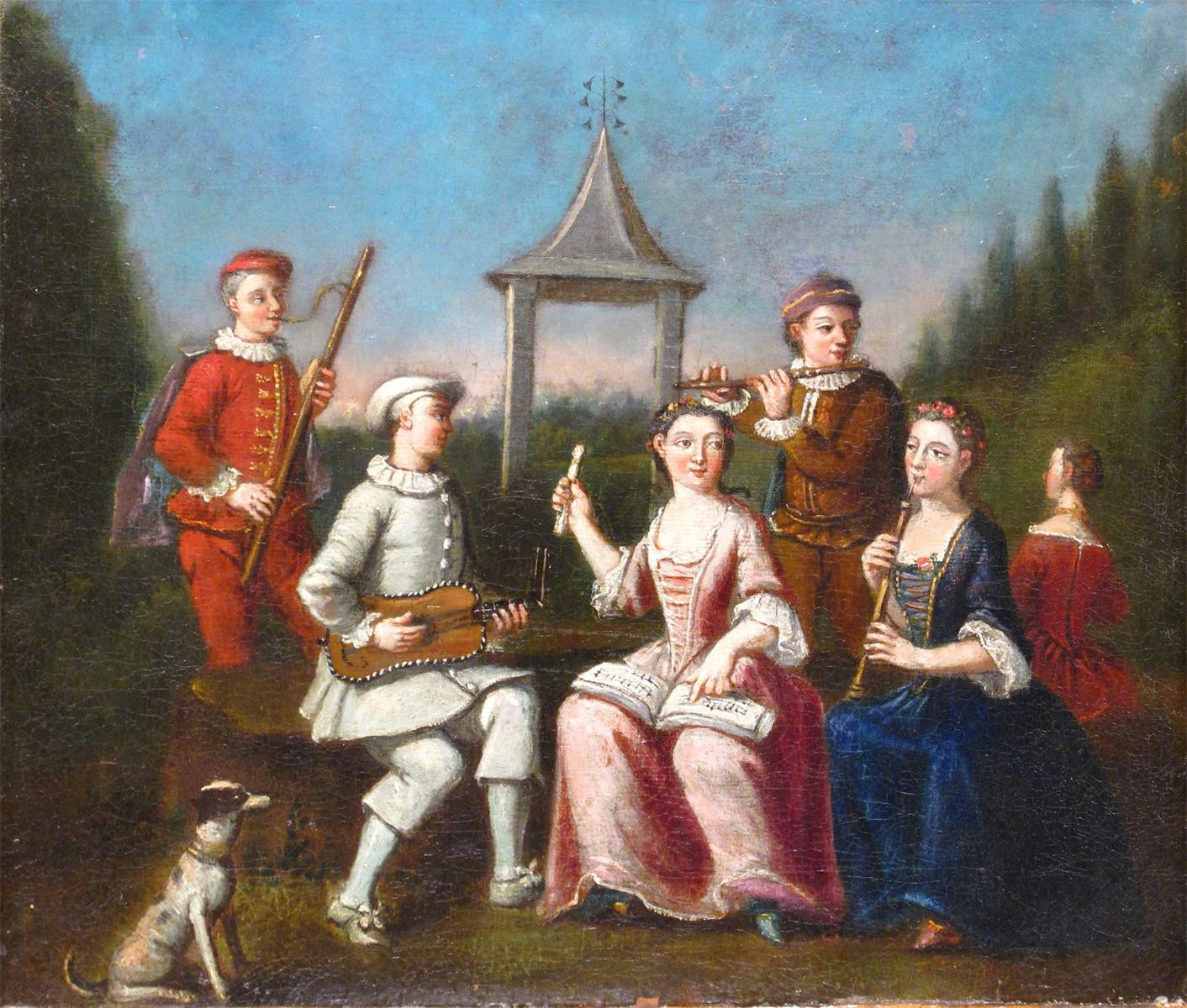 French School 18th Century A band of musicians Oil on canvas 45 x 54cm; 17¾ x 21¼in