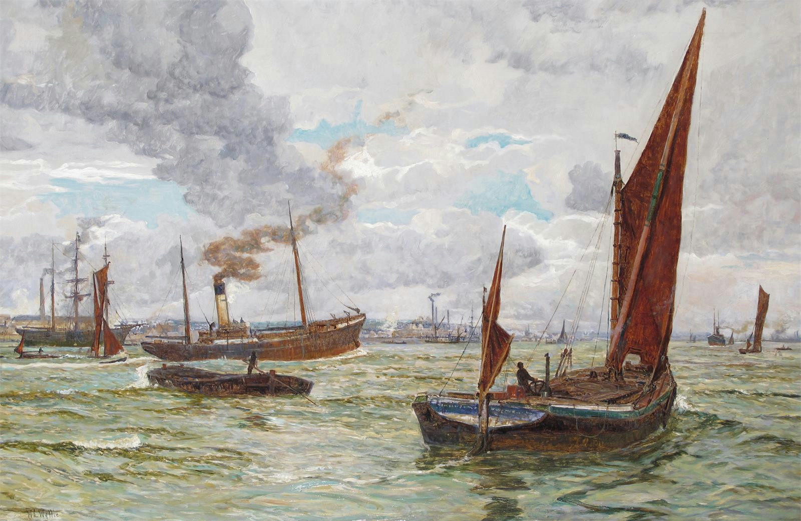 William Lionel Wyllie R.A. (1851-1931) Shipping in Southampton Water Signed Oil on canvas 61 x...
