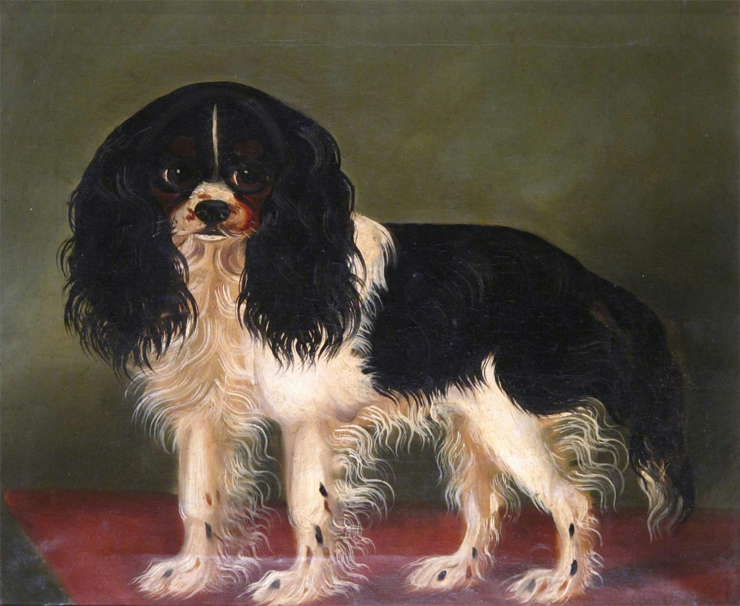 English School 19th Century King Charles Spaniel Signed verso Birch Oil on canvas 39 x 45.5cm;...