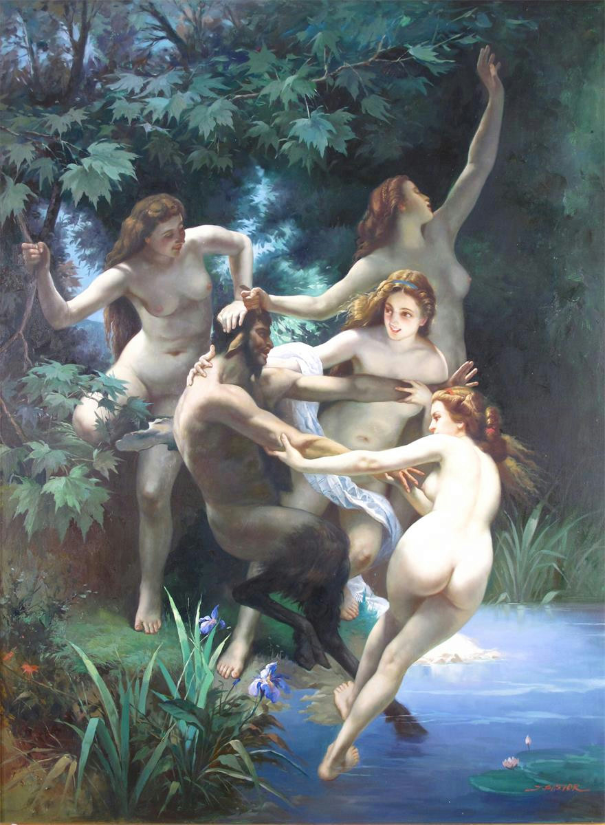 ‡J. Pastor after William Bouguereau Nymphs and Satyr Signed Oil on canvas 122 x 91cm; 48 x 36in A...