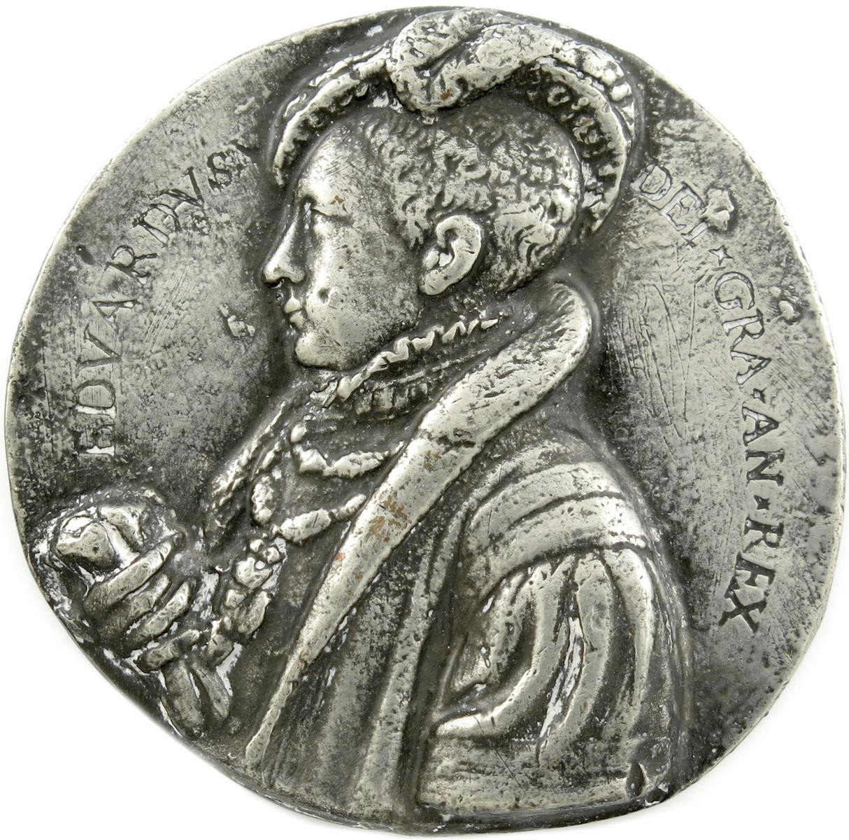 Edward VI, circular portrait plaquette, an electrotype copy of the "unique contemporary cast" in lead in the British Museum, bust left with plumed hat, wearing coat and doublet and Garter Collar and George and holding gloves, EDWARDVS DEI GRA AN REX, 74 x 74.5mm (cf MI 56/7, illus.; pl. IV, 1; H & P pl. 29, 4; Farquhar, 114), mid 19th century. Much as made, very fine.