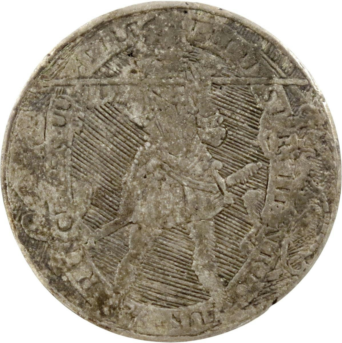 Henry Frederick, Prince of Wales (1594-1612), silver counter from a set, by or from the workshop of Simon de Passe, c. 1632, in imitation of engraving, the Prince stands to right in doublet, wearing sword and holding lance, his name on band supported by a lion and dragon, HENRICUS PRINCEPS UUALLIĆ, rev., Prince's plumes within Garter, HENRICVS PRINCEPS BVRIED AT WESTMINSTER, 27mm (MI 379/281 - the set; Farquhar I, 214). Very fine.