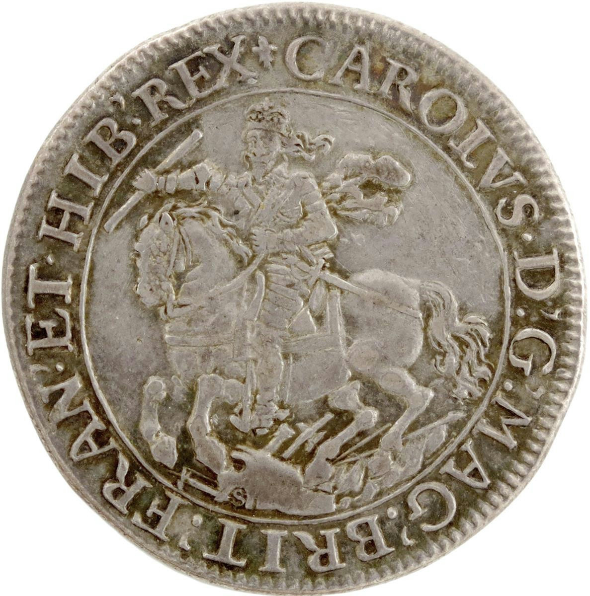 Charles I, The Scottish Rebellion, silver medal, 1639, by Thomas Simon, signed S (on armour beneath horse), Charles I on horseback to left, holding staff and trampling armour, CAROLVS DG MAG BRIT FRAN ET HIB REX, rev., hand issuing from the clouds holds a cord uniting a rose and a thistle, QVOS DEVS, 30mm. (MI 282/91; Eim. 130; Platt, type B, p. 150). Very fine, some minor scuffs on reverse.