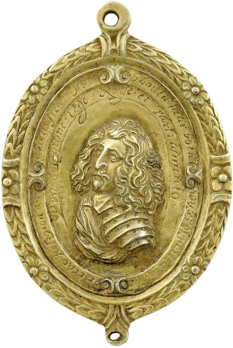 Edward Montagu, Lord Mandeville and 2nd Earl of Manchester (1602-1671), commander of Parliamentary Eastern Association army, oval gilt-silver Military Reward, 1643, by Thomas Rawlins, armoured bust three-quarters left, sash over shoulder, his hair long and flowing, legend in script in two lines, "Should hear both houses of parliament for true religion and subjects freedom stand - Pro Religione lege Rege et Parliamento", rev., the two Houses of Parliament with King and Speaker, wreath border around to both sides, 52 x 34.5mm (MI 310/138, "Unique?"; Platt II, type G, pp. 334-35), integral suspension loop. Good very fine with an excellent portrait and an extreme rarity.