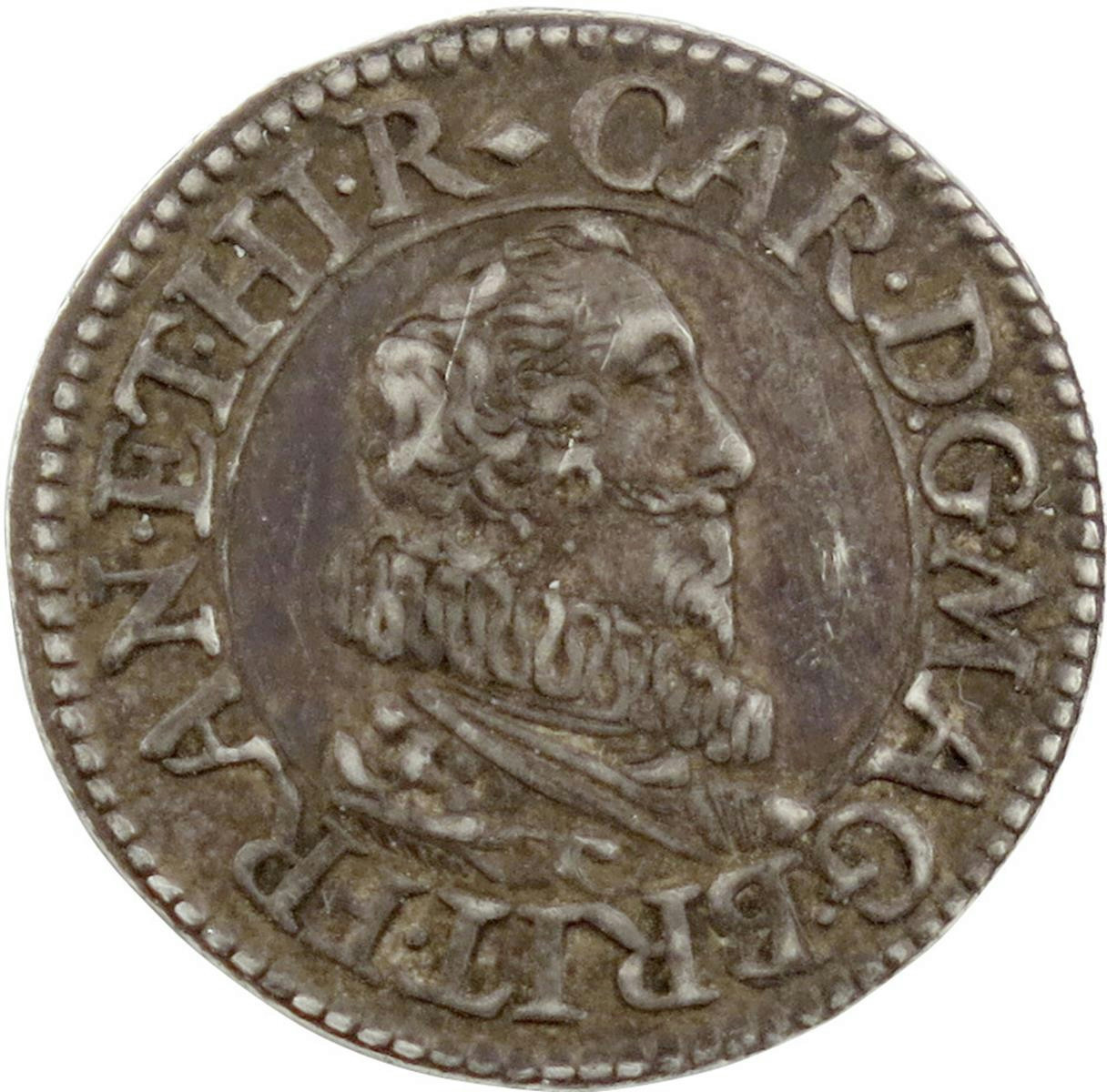 Charles I, Tower mint, Pattern Half-Groat, undated, Briot's uncrowned bust right wearing ruff collar, CAR D G MAG BRIT FRAN ET HI R, rev., crown above two interlocked C's, signed 'B' below between pellets, FIDEI DEFENSOR, 16.5mm (North 2687; S. 2856A). Nearly extremely fine, toned.