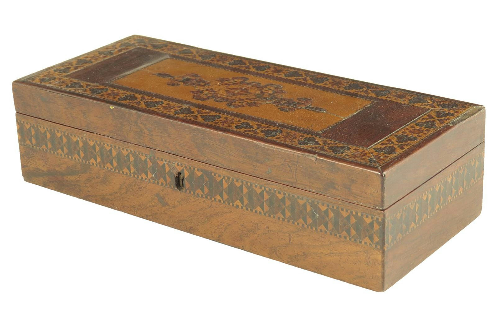 λ A Victorian Tunbridge ware and rosewood rectangular box