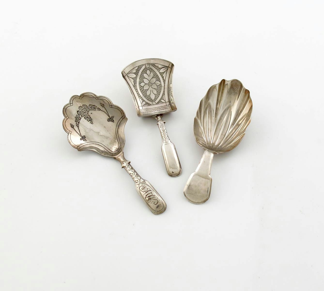 A small collection of three antique silver caddy spoons,