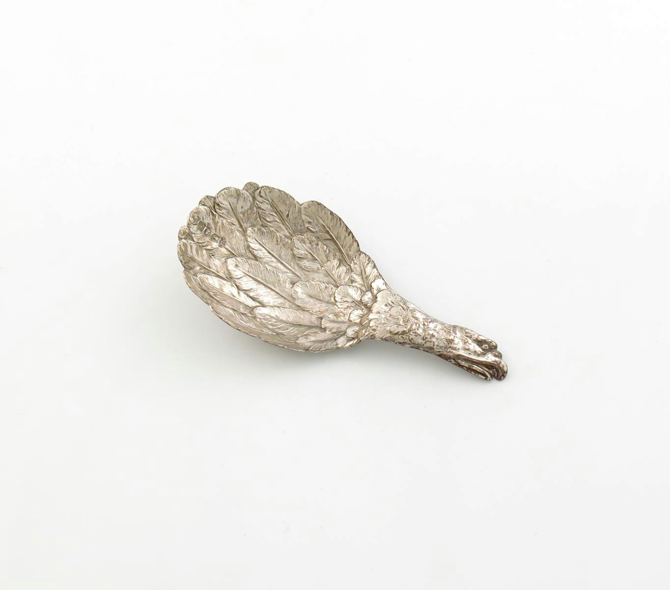the handle modelled as the eagle's head, textured feather decoration, length 7.8cm, approx. weight 0.2oz.