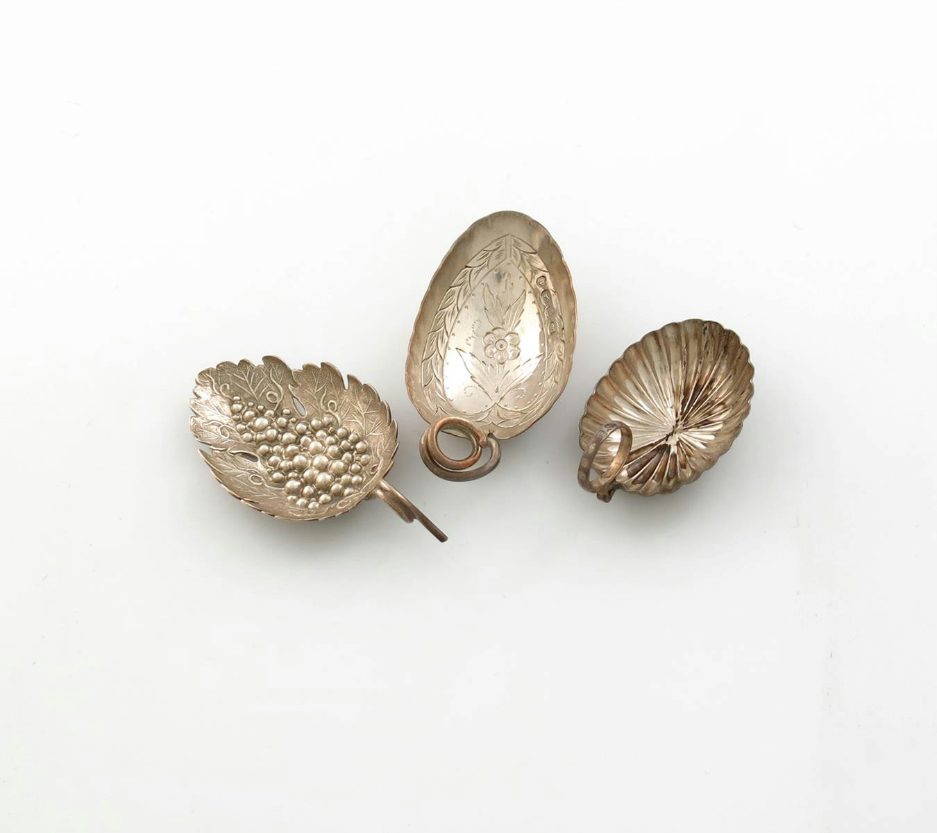 A small collection of three antique silver caddy spoons,
