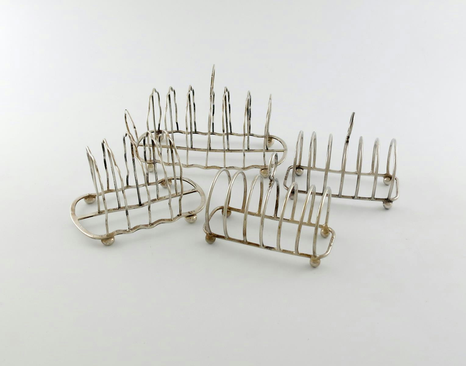 A pair of graduated silver toast racks