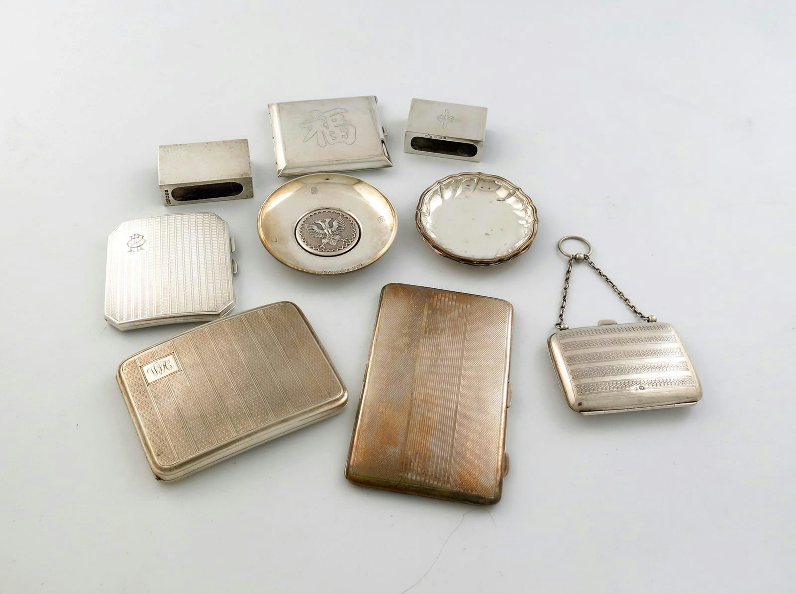 comprising: a Chinese compact, three cigarette cases, a purse, two match box, covers, and four ashtrays, approx. weight 30oz. (11)