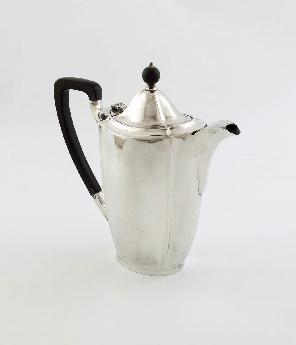 A silver hot water pot,