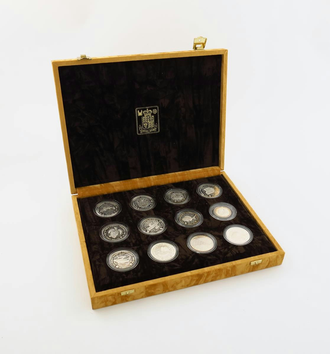 World Fisheries, silver Proof set of twelve world coins, 1984, by the Royal Mint, the coins designed by Stuart Devlin, in case of issue, with certificate. Brilliant mint state.