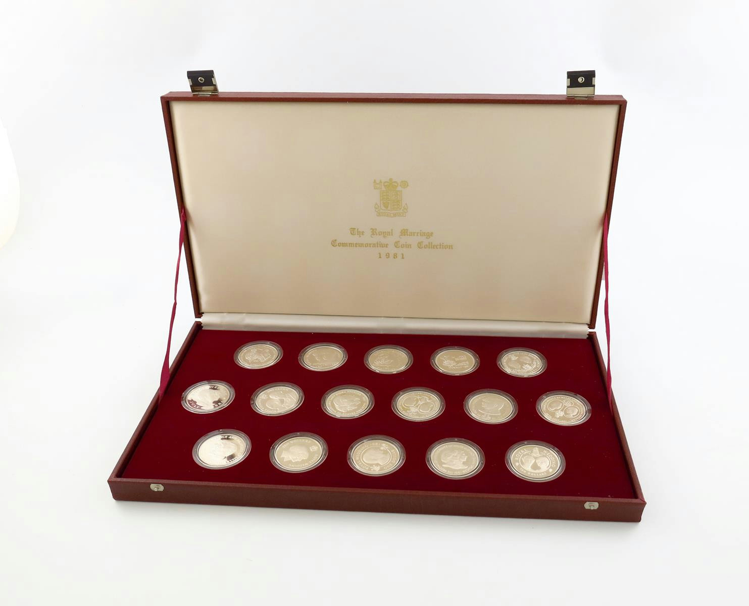 The Royal Marriage,1981, silver Proof set of sixteen world coins, by the Royal Mint, in case of issue. Brilliant mint state.