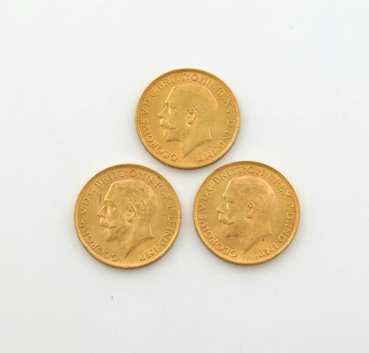 George V, gold Sovereigns (3), 1926, 1927 (2), all SA. Good very fine. (3)