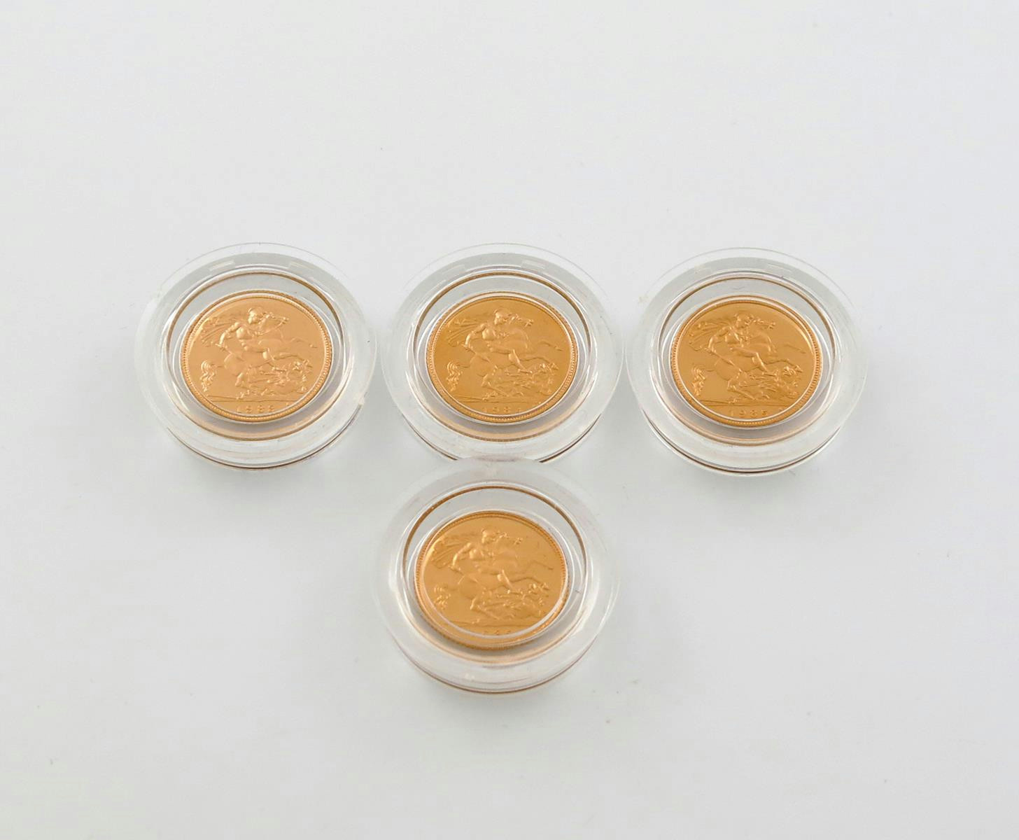 Elizabeth II, gold Proof Half-Sovereigns (4), 1982, 1983, 1984, 1985, first in folder, last three cased, with certificates. Brilliant mint state. (4)