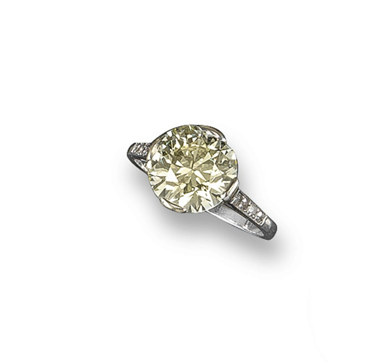 A diamond solitaire ring, the circular cut diamond weighs approximately 4.70cts and is set in platinum. Size O.